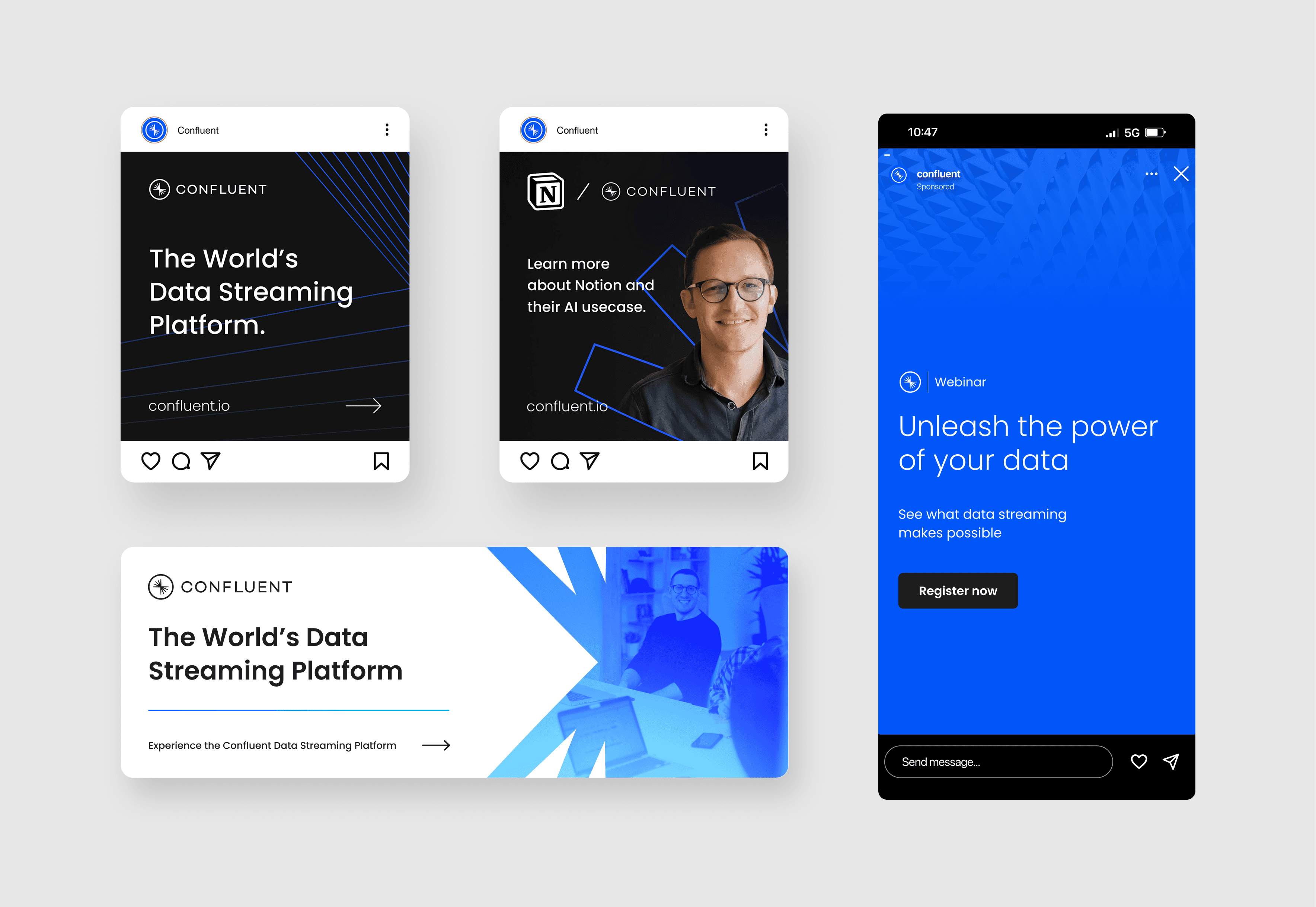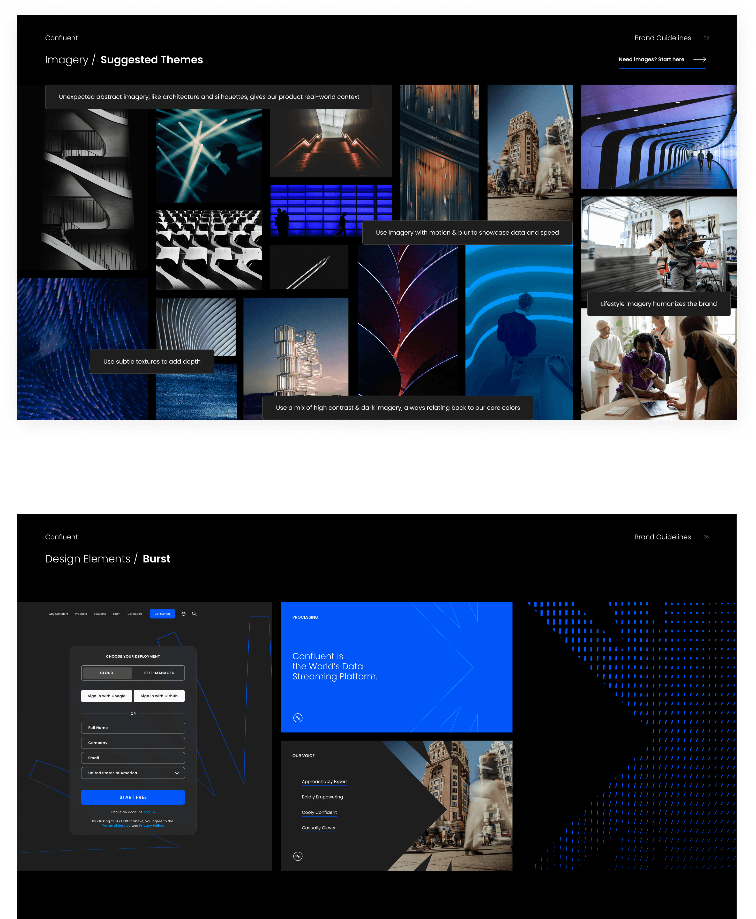 As Confluent scaled its product ecosystem and global presence, the brand needed to evolve to support greater clarity, consistency, and flexibility across touchpoints. The challenge was to refine and extend the brand system—ensuring it could scale across teams, channels, and use cases while maintaining a cohesive visual identity.