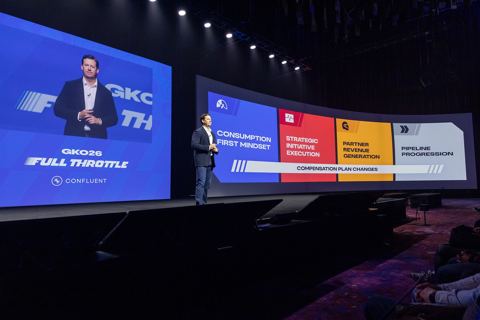 Confluent’s Growth Kickoff brings together global sales and marketing teams to align on strategy and direction for the year ahead. Building on the previous year’s foundation, the challenge was to evolve the identity into a more dynamic, high-impact system—reflecting Confluent’s partnership with Visa Cash App Racing Bulls while scaling across digital, physical, and on-site environments.