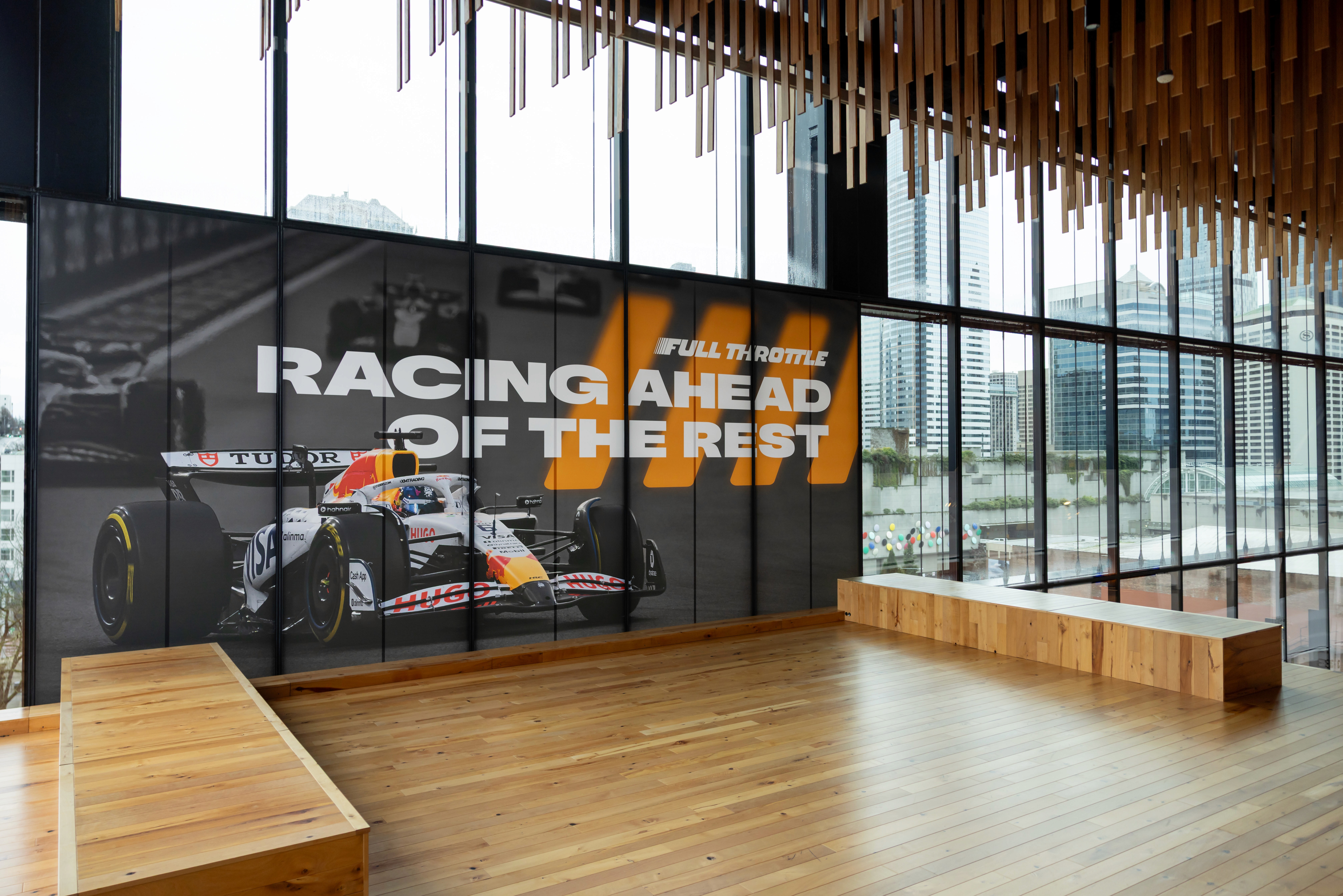 The identity was developed at the intersection of Confluent’s brand system and the visual language of Visa Cash App Racing Bulls—balancing inspiration with clear differentiation. Drawing from the Racing Bulls aesthetic, the system introduced a more dynamic, performance-driven visual language through typography, color, and form—while maintaining alignment with Confluent’s core brand principles. A structured color system was used to define zones across the venue, enabling intuitive wayfinding while reinforcing visual consistency across touchpoints. Working closely with agency partners, the direction required careful stewardship to ensure the experience reflected the precision and sophistication of Formula 1—avoiding more generic motorsport references and reinforcing a cohesive, elevated system across environments.